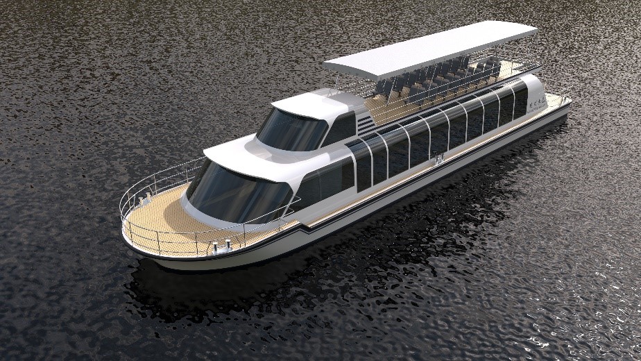該型船最大船長28.00m,型寬5.80m,型深2.00m,設(shè)計吃水1.15m,可搭載乘客120人,動力系統(tǒng)采用賽思億S-Renewable系列純電池動力推進系統(tǒng),整個系統(tǒng)配置共接入2組鋰電池組,整船鋰電池容量共計約559kWh,驅(qū)動2臺55kW的推進電機。同時該船搭載賽思億S-Link遠程監(jiān)控系統(tǒng),可為船舶運營方提供全方位的船舶運營數(shù)據(jù)分析和遠程監(jiān)控服務。目前,該系列船舶建造周期時間緊、任務重,賽思億將全力配合,力保整船交期。