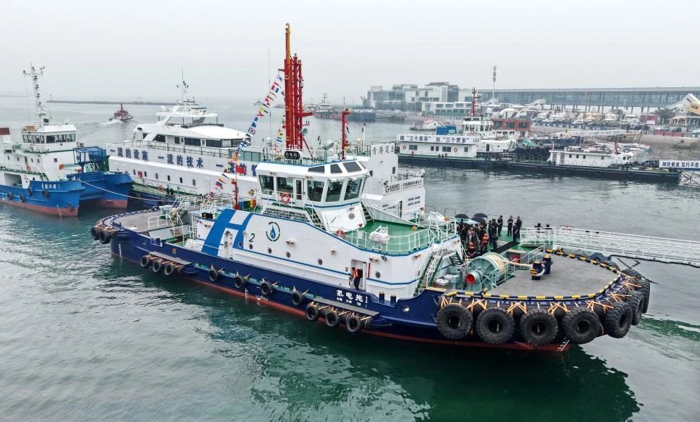 6月26日,馬力最大、鋰電池容量最大的全國首艘氫電拖輪“氫電拖1”輪在山東港口青島港正式入列。“氫電拖1”輪創(chuàng)新采用全球首創(chuàng)的 “氫燃料電池+液冷鋰電池”混合動力模式、北斗集成系統(tǒng)、全自動智能岸基充電等技術(shù),填補了國內(nèi)多項空白。
