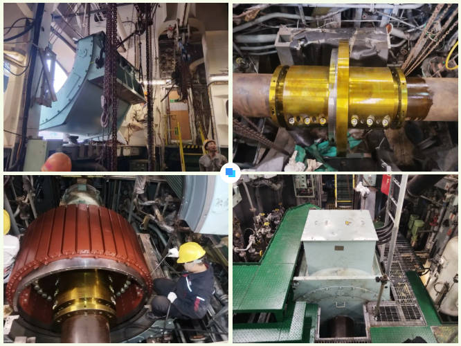 “KANARIS” 177000DWT散貨船,船長282m,入級(jí)ABS船級(jí)社,改造方案搭載中船賽思億分半式永磁抱軸電機(jī)+變頻器+變壓器的軸發(fā)改造方案,軸發(fā)系統(tǒng)額定功率1200kW,同時(shí)對(duì)原船功率管理系統(tǒng)(PMS)和主機(jī)遙控系統(tǒng)(ECS)進(jìn)行改造,可實(shí)現(xiàn)降功率運(yùn)行及轉(zhuǎn)速低時(shí)自動(dòng)啟動(dòng)發(fā)電機(jī)組,保護(hù)電站及船舶穩(wěn)定運(yùn)行。作為全流程 EPC 總承包項(xiàng)目,中船賽思億全程主導(dǎo)了從前期3D掃描、方案布置設(shè)計(jì)、生產(chǎn)制造到安裝及調(diào)試等全鏈條服務(wù)。
